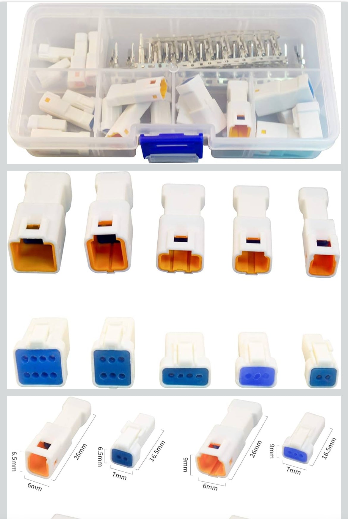 - Package Contain 1pcs plastic storage box, 5 pairs 2 pin + 3 pin connector; 3 pairs 4 pin + 6 pin + 8 pin connector, total 19 kits.