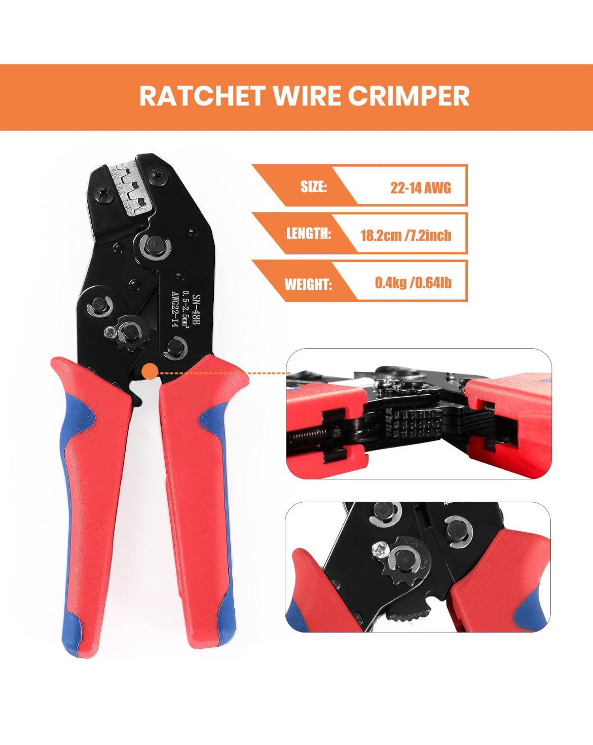 - PRECISE CRIMPING: This wire crimper tool is designed for crimping 14-18 AWG open barrel terminals. Its unique ratchet mechanism ensures precise and secure crimps every time, providing reliable connections.